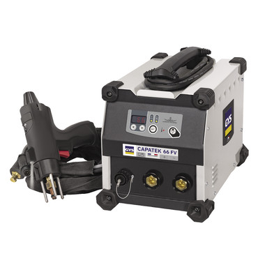 CAPATEK 66 FV — промышленный генератор с емкостным разрядом при отводе, способный приваривать шпильки диаметром от М3 до М8 из омедненной стали, нержавеющей стали, алюминия и латуни на тонких листах без маркировки и деформации.