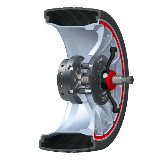 Прижимной колпак Ø120 мм с резиновой защитной накладкой исключает повреждение легкосплавных дисков и обеспечивает равномерную фиксацию.