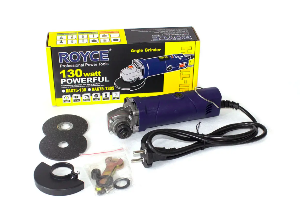 Мини болгарка Royce RAG75-130s – это надежный, многофункциональный инструмент, который станет отличным дополнением к любой мастерской. Благодаря своей универсальности, высокой мощности и широкому набору аксессуаров этот инструмент обеспечит эффективную работу с различными материалами и видами задач.