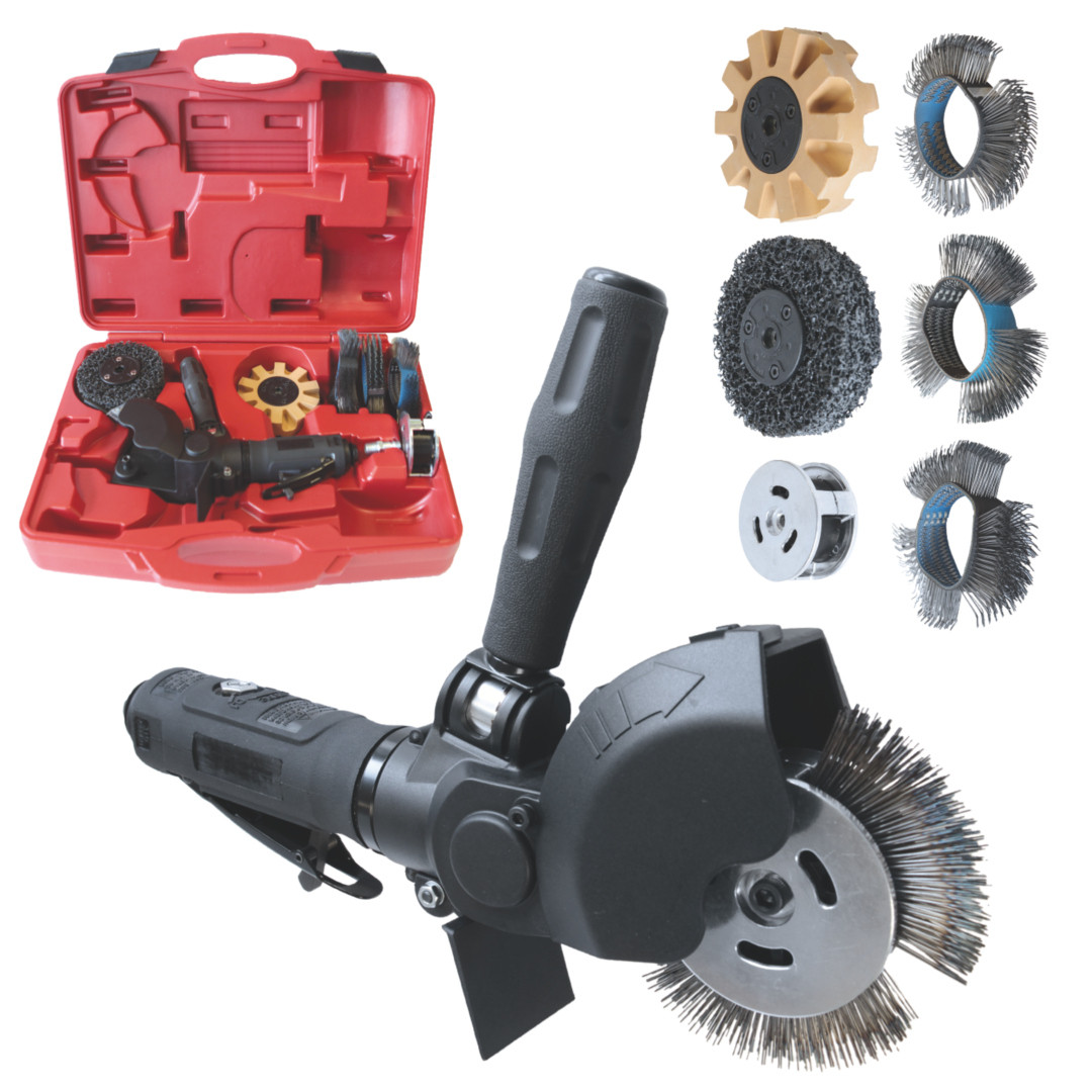 Различные щетки позволяют его применять в различных операциях по зачистке поверхностей автомобильных кузовов.