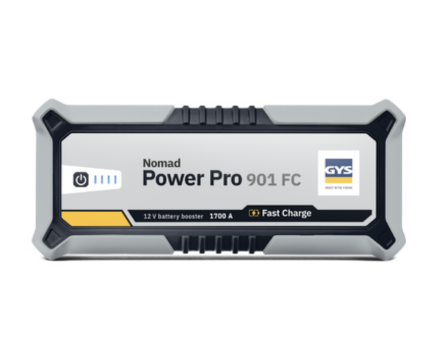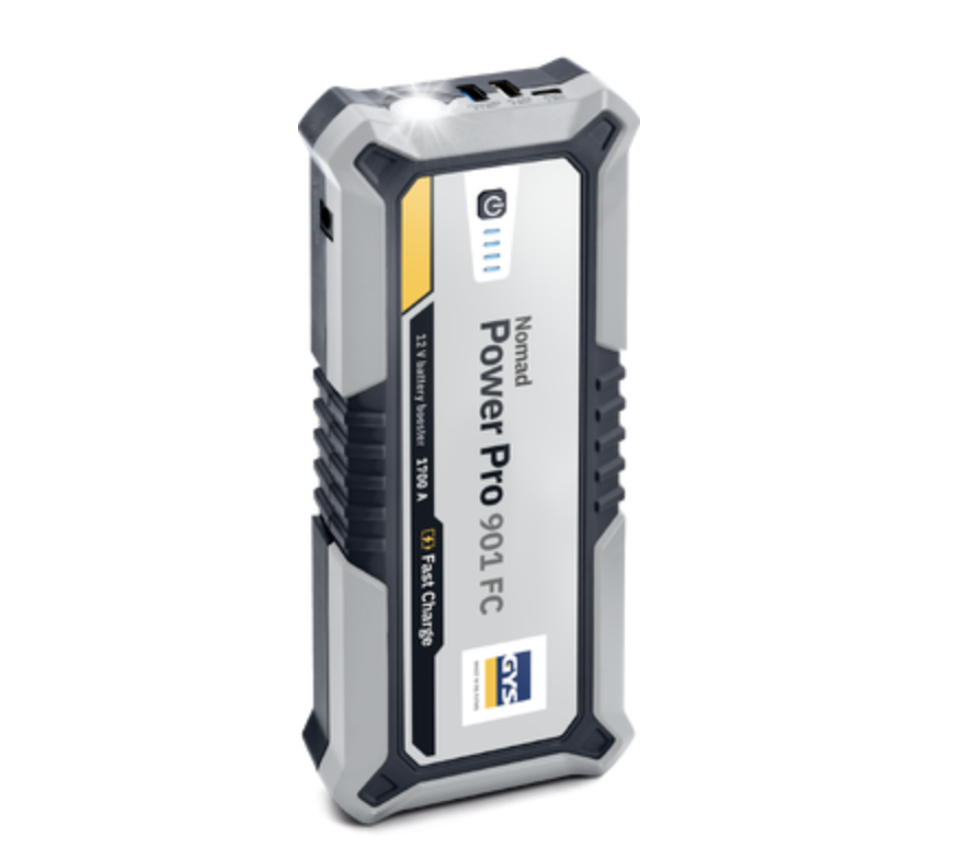 NOMAD POWER PRO 901 FC — это высокопроизводительный литиевый бустер ёмкостью 92,5 Wh, разработанный французской компанией GYS, предназначенный для быстрого и безопасного запуска автомобилей и питания портативной электроники.