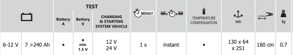 Подходит для 3 типов свинцовых аккумуляторов емкостью от 7 до 240 Ач:
