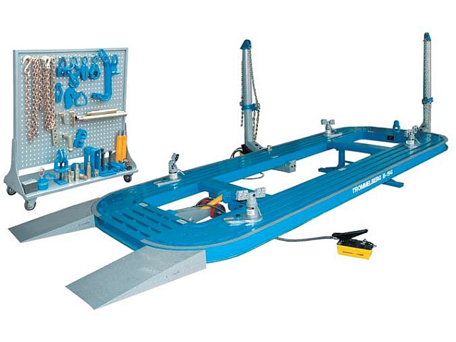 Платформенный стапель с односторонним гидравлическим подъемником для восстановления геометрии кузова автомобилей, имеющих повреждения любой сложности.