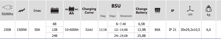 • Поддержка АКБ 6, 12 и 24 В (с жидким или гелевым электролитом) автомобилей в процессе диагностики или перепрограмировании ЭБУ;