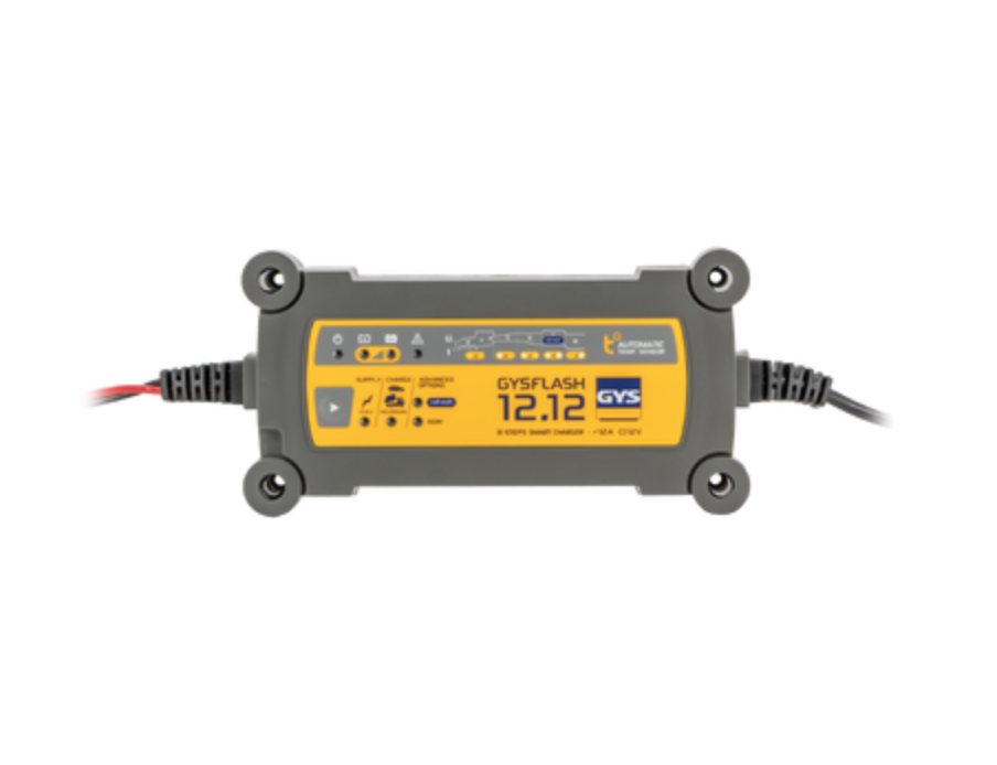 GYSFLASH 12.12 специально разработан для зарядки аккумуляторов 12 В всех типов автомобилей, микроавтобусов, кемперов, грузовиков и сельскохозяйственной техники.
